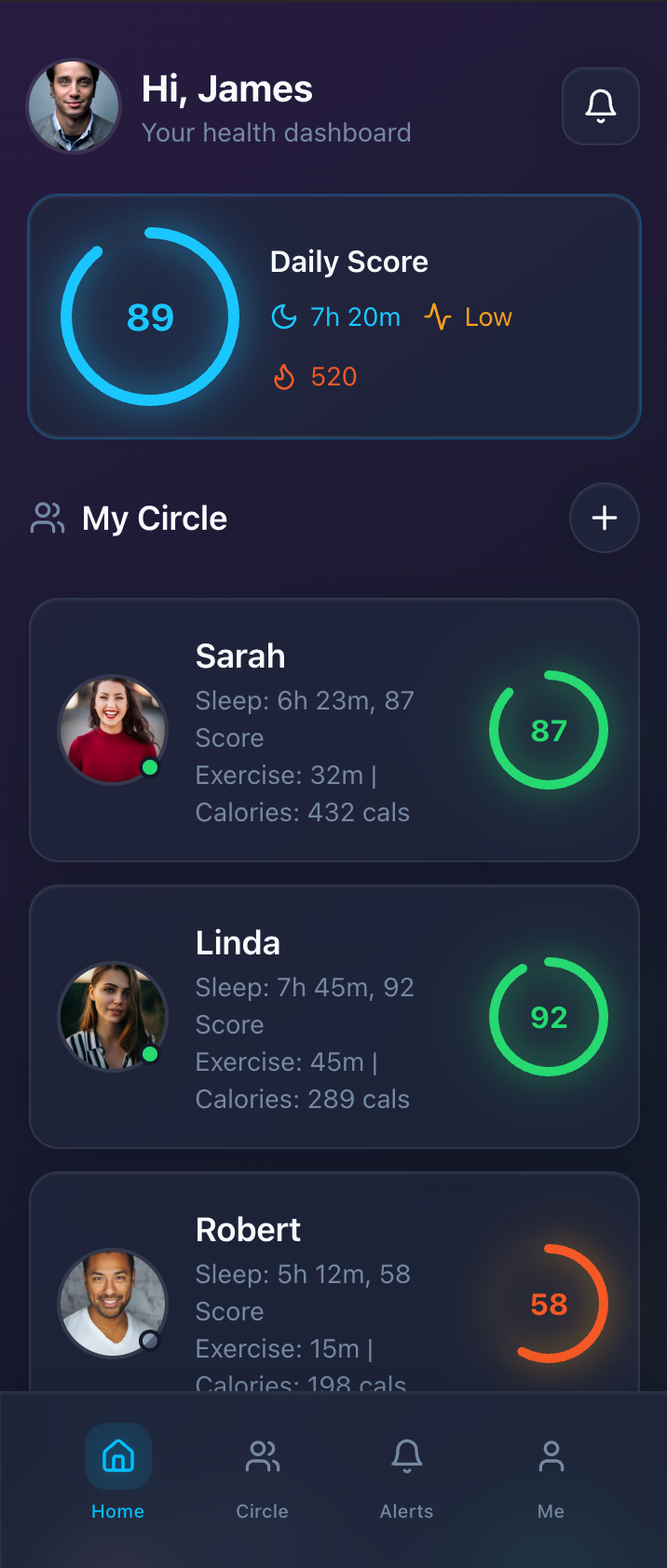 Whether it’s catching low sleep early or celebrating a great workout day, Kinly makes family health simple, private, and meaningful.