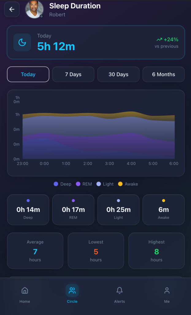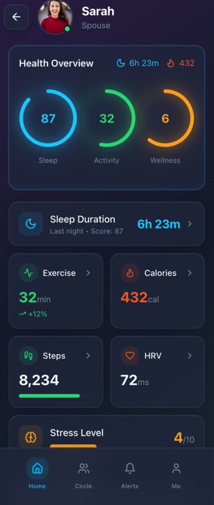Stay connected to your loved ones’ health with real-time overviews pulled directly from Apple Health and Google Fit. See sleep scores, activity trends, and wellness signals in seconds—no complicated charts, just what matters most.